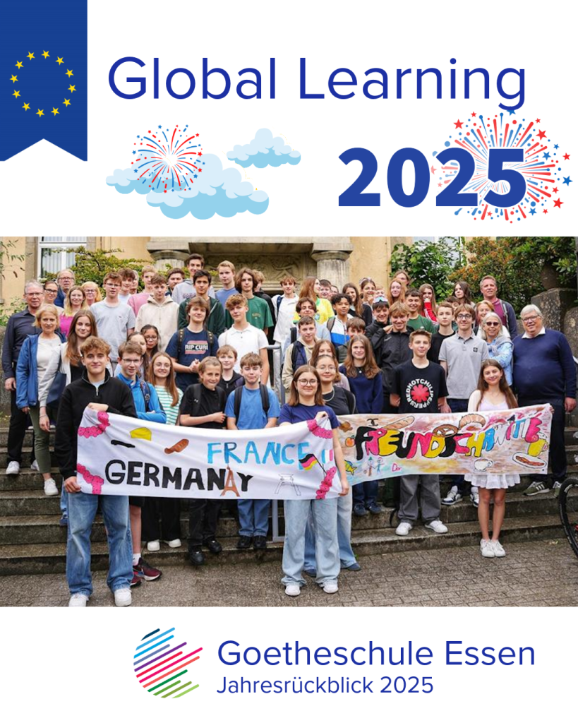 Im Jahr 2025 können wir auf vielfältige Aktivitäten zurückblicken, die neue Horizonte eröffnet haben. Unsere internationalen AGs waren aktiv in der Vorbereitung von Erasmus-Tagen mit französischen und dänischen Schulen, unsere internationalen Nachhaltigkeitsclubs haben den Online-Austausch mit Thailand fortgeführt, unsere IB-Schüler haben ihr IB Diploma Programme mit herausragenden Ergebnissen abgeschlossen, die No Fear Drama Group hat Shakespeare auf die Bühne gebracht – und viele unterschiedliche Akteure haben sich an unserem 10-jährigen Erasmus-Jubiläum beteiligt, das ganz im Zeichen von Demokratie und Vielfalt stand.